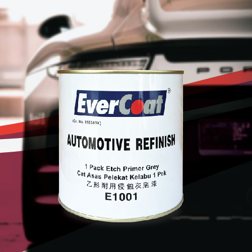 EverCoat E1001 ETCH Primer is a one pack, fast drying, modified epoxy based etching primer, formulated for application onto cold roll steel, aluminium, galvanized and stainless steelwork. It has excellent adhesion and anti-corrosion properties against the most common metals. It also has a good intercoat adhesion with primer and basecoat.